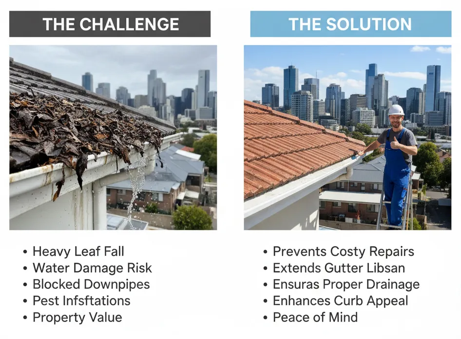 Chatswood’s leafy character is part of its charm, but it comes with a price. Autumn leaves, gum tree debris, pine needles, and storm-driven dirt all end up in your roof gutters.