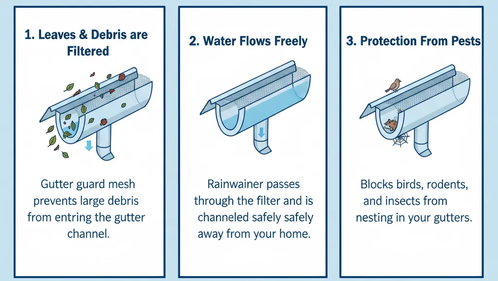 At their simplest, gutter guards are protective mesh or covers fitted over your gutters. They let water in but keep debris out. But not all guards are equal.